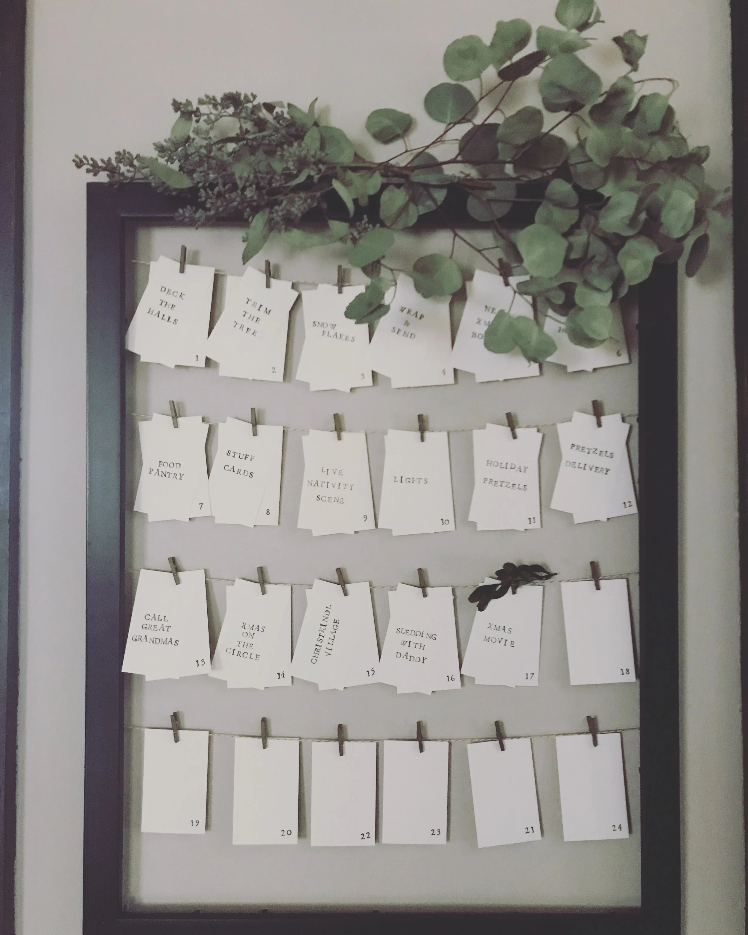 I created an Advent calendar. I made my own Advent calendar. (Special thanks to Reading My Tea Leaves for the inspo and direction.) I was so proud of myself. And it helped me organize the month. As the years have gone on, I’ve realized that an Advent calendar - or the calendar of December in general - this needn’t be religious! - is merely a jumping off point in terms of organization. Allow me to elaborate: