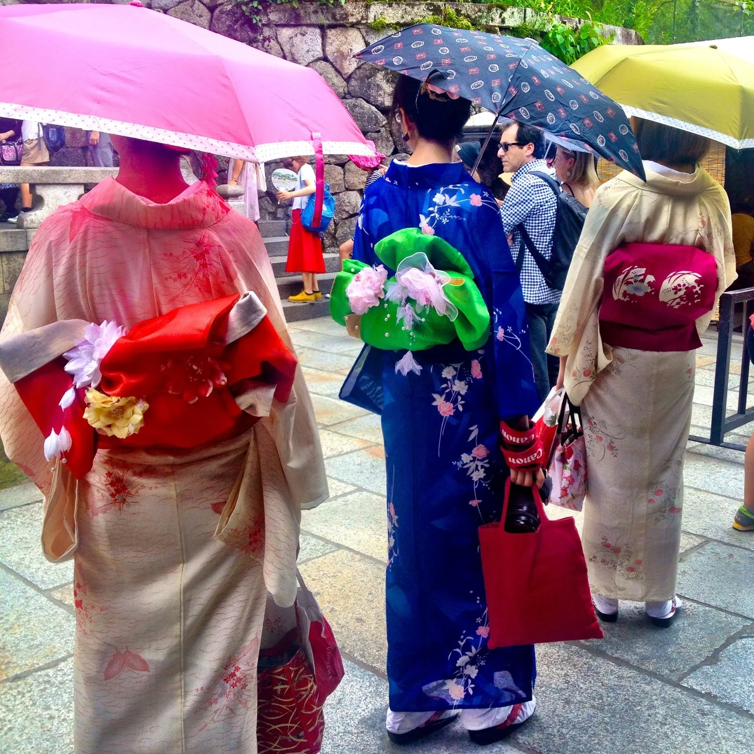 Umbrellas are the most popular accessory – used in both rain and shine. An umbrella = sunscreen. It makes sense. The sun is merciless (what would my Irish skin have done without my floppy hat, I ask you?).