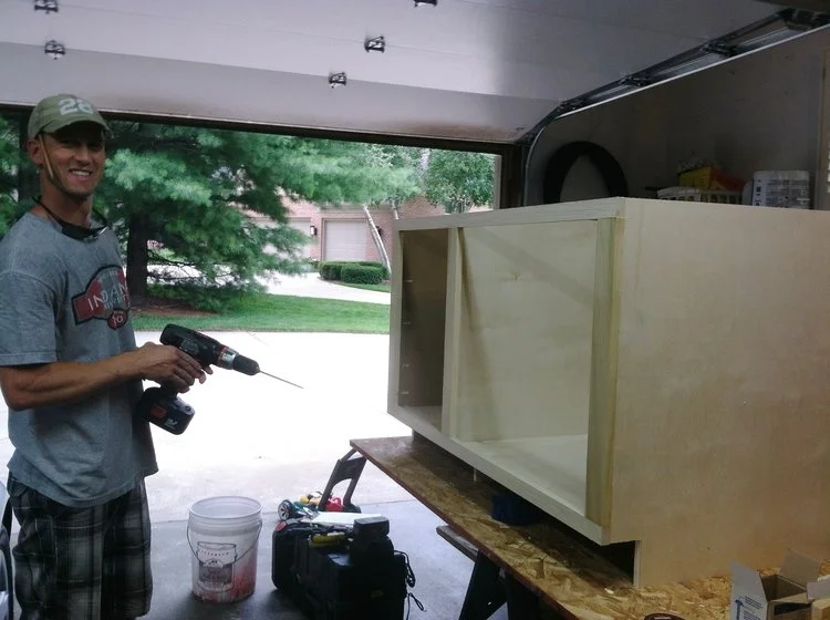 A custom cabinet (to store cleaning supplies) in the making, to be housed in the laundry room.