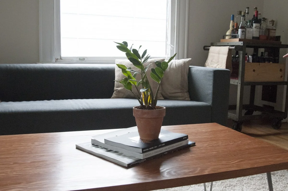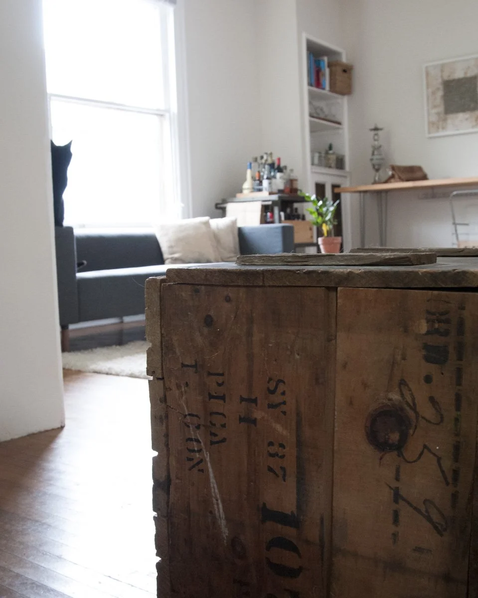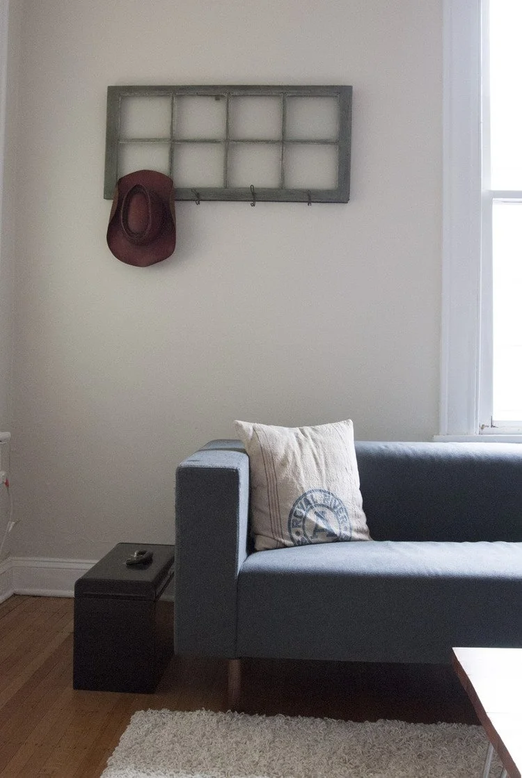 The best way to describe the style of my home would be minimalist contemporary meets industrial. I love white, negative space, and tidiness, but I also accent the space with rough and rustic industrial pieces that bring some rawness to the space. I am very attracted to real materials; things that have been touched by nature. When I first walked into my apartment, I had an immediate connection with it. I could see all of the potential, but I was also attracted to the querks and flaws of the space. I had two criteria for an apartment when I was moving – big windows and hardwood floors. I was moving from a 1000 square foot two bedroom house with a basement and garage into a 600 square foot studio apartment, so I had to get rid of 3⁄4 of my stuff and I could not be happier with the simplicity of my new home.
