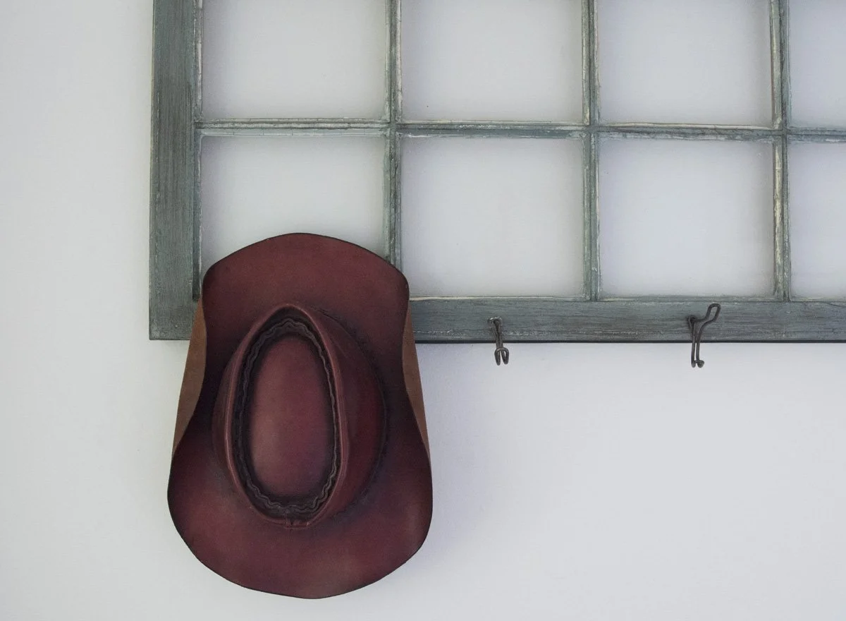 A couch & a cowboy hat. But also Lara's toolkit & a flour sack repurposed into a pillow.