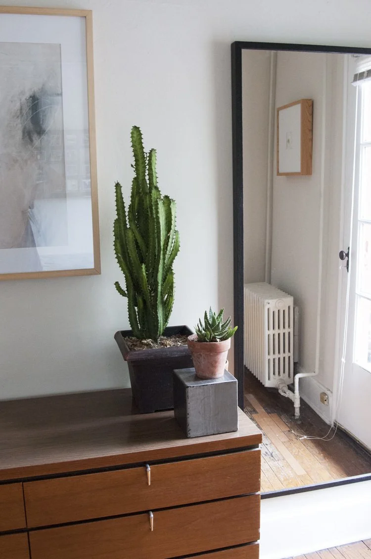 Upon stepping foot inside Lara's Old Northside apartment one can't help but swoon. With a background in visual arts (she was a sculpture major, guys) and a keen eye for style, her home is the essence of a serene space. Whether she built her own pieces (her handcrafted bookshelves & coffee table are made of poplar and ash, respectively) or reclaimed found objects from demolition sites, Lara put thought into every detail of her home. The only question left unanswered is when will she open her own shop so I can have handcrafted Lara Banker bookshelves in my serene space? Let a girl dream.