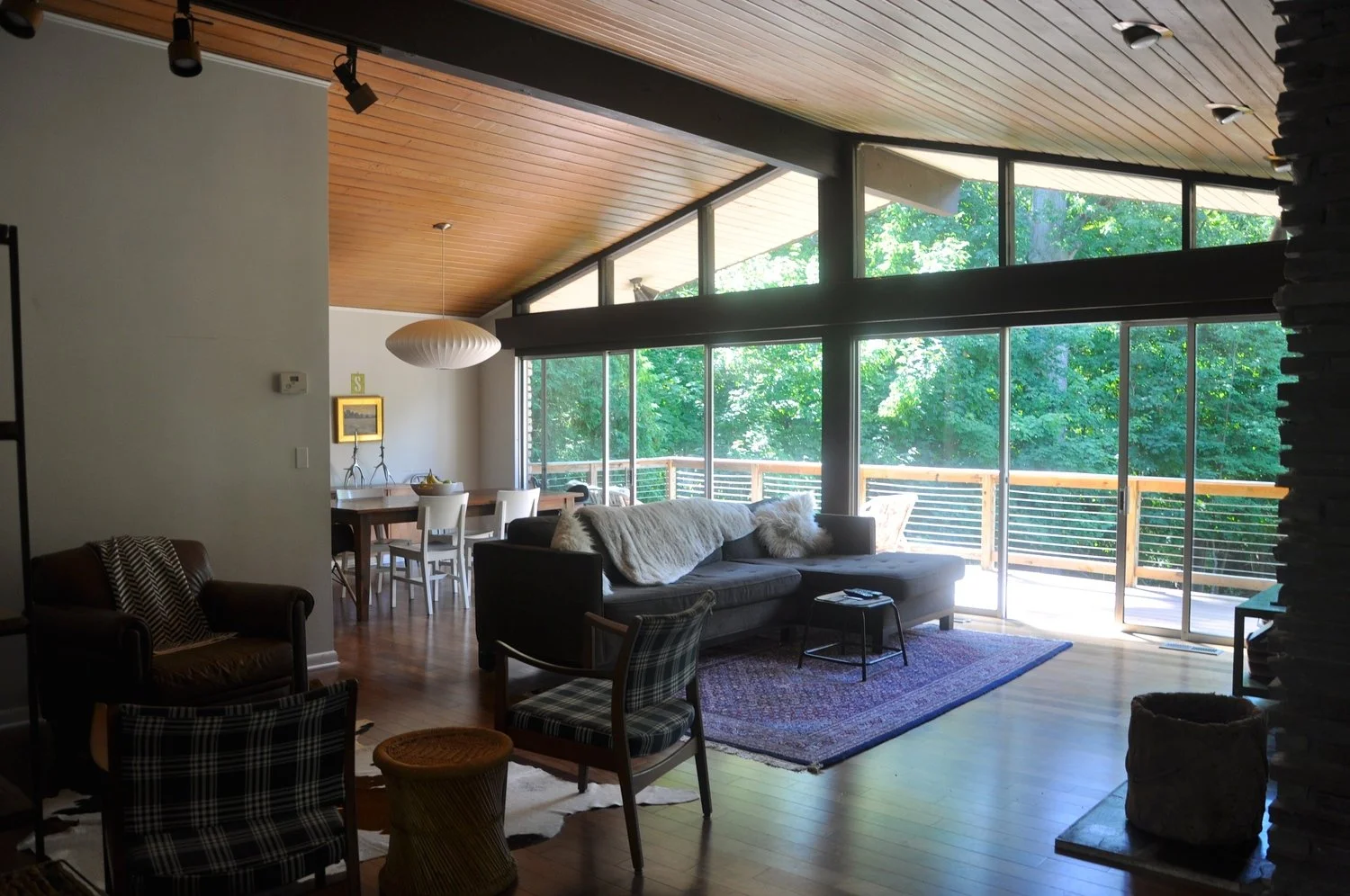 Our home was built in 1960 in the mid-century modern style. During our renovation, it was important to us to stay true to the architectural integrity of that time period while adding some modern flair. We did a lot of scaling back and removing rotted wood and over grown bushes which exposed the true beauty and genius of the home. I'd say our personal style is a little more laid back and bohemian than mid century so we added our flair with updated colors and some more relaxed furniture. It sounds like our home style is having a bit of an identity crisis - but it's actually kind of evolved very naturally.