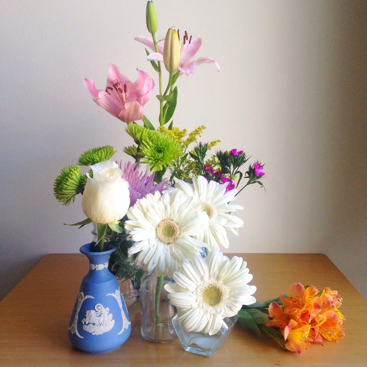 1. Probably most importantly, and your starting off point: The Grand Assessment. Look at the bouquet and look at the vases in your house. Match the right flower to the right vase.