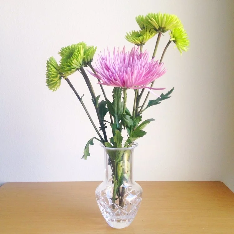 In addition to the bouquets, I've armed myself with a small collection of simple, stylish vases. I have an array of sizes for my everyday glass vases (on the left), and I have a small collection of fancy-pants vases gifted to me by the women in my family (on the right). The more shapes and sizes, the better.